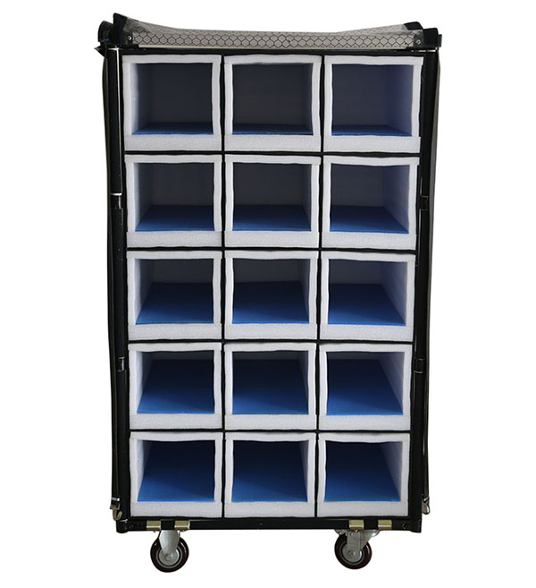 周转车主要由精益管、金属连接件、中空板、减震EVA、防尘布罩等组成。